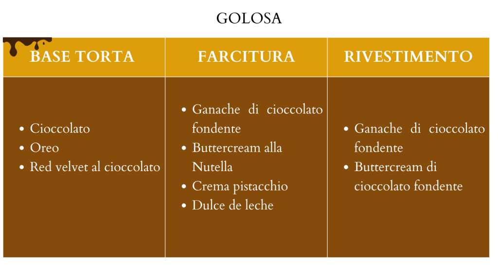 Ti consiglio di iniziare la tua scelta tra le tre categorie principali: CLASSICA, GOLOSA ed ESOTICA.